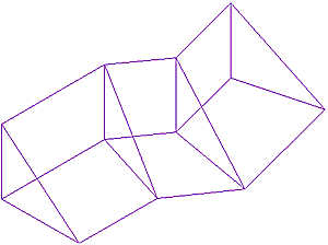Wenn allerdings ein zusammengesetzter Grundriß aus drei Hauskörpern mit jeweiligem Pultdach gegeben ist, und diese drei Hauskörper auch noch schiefwinklig zueinander stehen, also einen Traufwinkel ungleich 90° bilden, dann empfiehlt sich wieder durchaus eine Dachausmittlung, um die genaue Lage und Größe der Kehllinie bzw. der Gratlinie zu ermitteln.