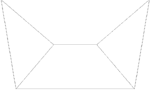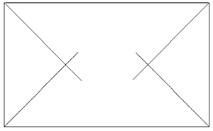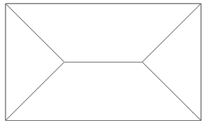 Wie man sieht, entstehen hierbei Punkte, an denen sich die Linien schneiden. Von einem dieser beiden Punkte zieht man nun eine Linie zu dem gegenüberliegendem Punkt. So erhält man die Firstlinie, welche beim gleich geneigtem Dach immer genau in der Mitte der Hausbreite liegt.