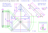 - Als Nachweis der Kenntnisse in der Schiftung muss einer der Gratsparren (einschließlich der Abbundmaße!) ausgetragen werden. Es reicht hier ein DIN-A4-Blatt bei einem Maßstab M 1:10 (siehe Zehntelplan).