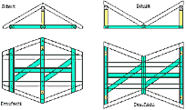 - Die Gesamtkonstruktion (hier insbesondere. der Schwellen) soll in sich ausgesteift konstruiert werden. Die Ortgangausbildung muß mittels Schrägem Giebelsparren erfolgen (Prüfungsinhalt »Schiftung«).