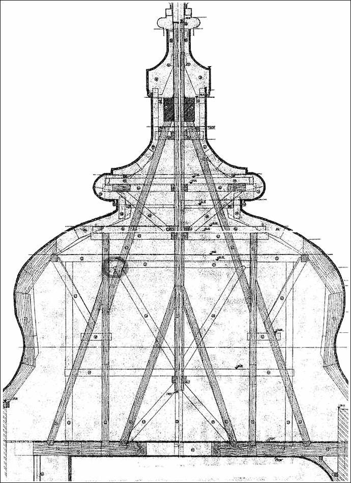 Turmhaubenmodells der Dresdener Frauenkirche. Abb. Vertikalschnitt samt Normalsparren.