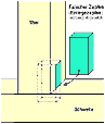 Bei der Restaurierung eines Forsthauses im Solling in Fachwerkbauweise mussten Wandteile ausgewechselt werden. Dazu wurden zunächst die Rähme und Deckenbalken mit verkeilten und z.T. zweiseitig schräg angesetzten Rundholzstützen abgefangen. Die Stiele selbst standen ursprünglich stumpf auf den Schwellen, wurden auch wieder in dieser Weise vorbereitet und von der Seite her mit wechselnden Hammerschlägen oben und unten zwischen Schwelle und Rähm eingetrieben, anschließend zur Bundseite hin ausgerichtet und ins Lot gebracht. Zur Lagesicherung wurden abweichend vom ursprünglichen Zustand zusätzlich Einlegezapfen (Falsche Zapfen) eingetrieben (siehe. Abbildung 1). Um das nachträgliche Eintreiben zu erleichtern, aber auch zur zusätzlichen Sicherung der Zapfen (Passung) wurden diese einseitig abgesetzt.