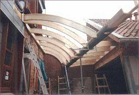 Innenhofüberdachung mit gewölbten Sparren. Abb. Profilsparren.