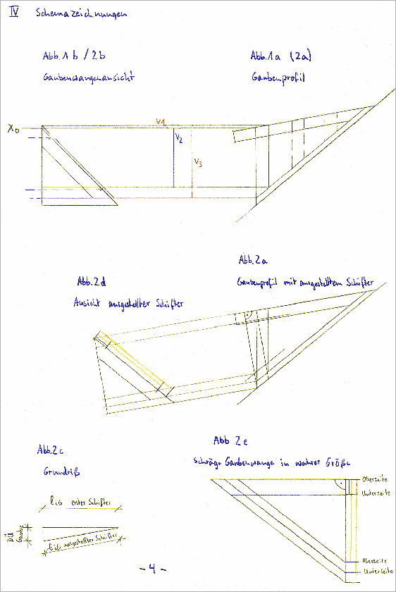 Auf dieser Zeichnung werden die einzelnen Arbeitsschritte dargestellt. 1a und 1b sind für die Flächenschiftung, 2a bis 2e stehen für die Urlotmethode.