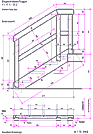 Aus der Schrittmaßregel Auftritt + 2 * Steigung = 59 - 65 cm ergibt sich eine Auftrittlänge von 28 cm. Die Stufenbreite errechnet sich aus der Summe der Unterschneidung und der Auftrittlänge: 28 cm + 2 cm Unterschneidung = 30 cm Stufenbreite. Die Stützweite der Treppe ergibt sich aus der der Summe der Treppenlaufbreite und der Einlaßbreite der Treppenstufe in die Wangen: 80 cm Laufweite + 2 * 2 cm Einlaßbreite = 84 cm Stützweite Bei der Verwendung von Buchenholz ergibt sich bei dieser Stützweite eine zulässige Stufendicke von 30 - 45 mm (Tabellenwert). Da die Stufen durch das Einfräsen von Spannschrauben geschwächt werden und bezüglich der besseren Optik wurde eine Stufendicke von 45 mm gewählt. Das Treppengeländer wird normgerecht 90 cm über der Vorderkante Treppenstufe angebracht.